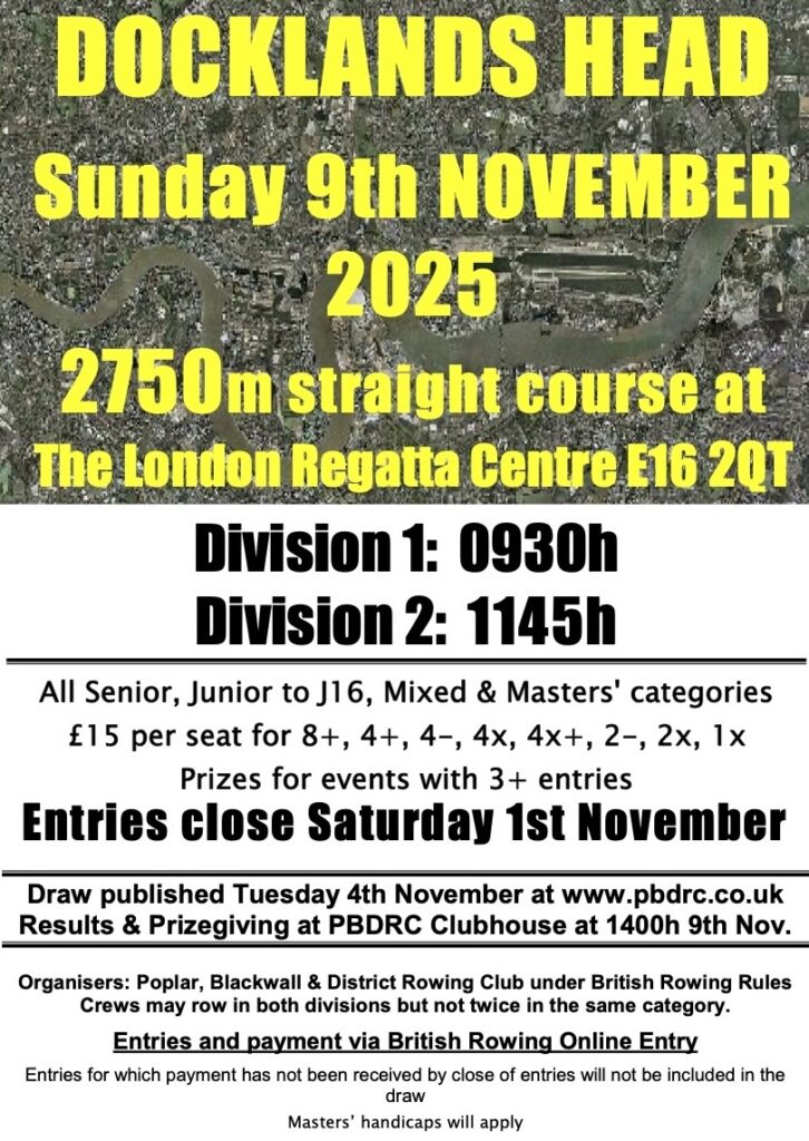 Come join and support us at Poplar, Blackwall & District Rowing Club – a friendly rowing club based on the Isle of Dogs, London. We row on both the tidal waters of the River Thames and the 2000m multi-lane Royal Albert Dock course.