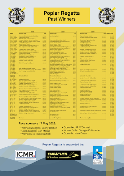 Organised by: Poplar, Blackwall & District Rowing Club (PBDRC)
