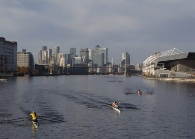 It was a truly superb day for racing on the water. The conditions were near perfect, treating the 173 competing crews in two divisions to mild temperatures, bright sunshine, and only a gentle breeze along the challenging 2750m course, which ran from the Royal Victoria Dock into the Royal Albert Dock.